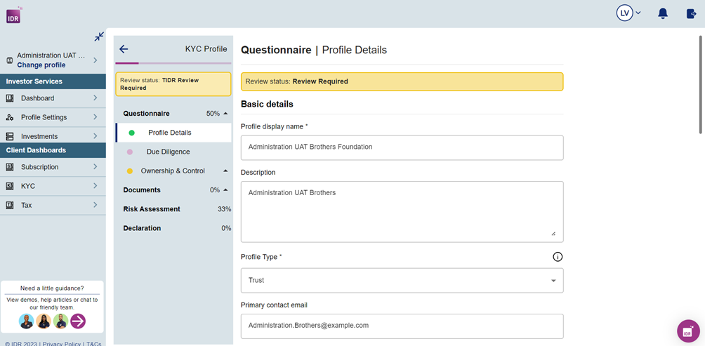 Guide to navigating & completing your Profile Details & Due Diligence on our New Platform.