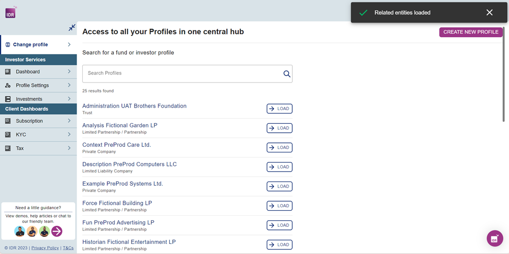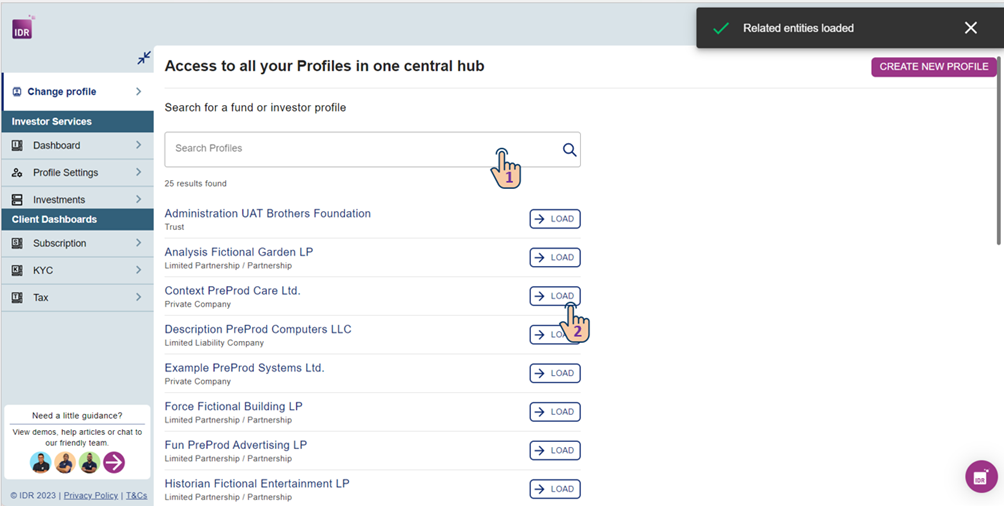 Once you've located the profile you wish to access, click the "Load" button adjacent to the selected profile to initiate the loading process.
